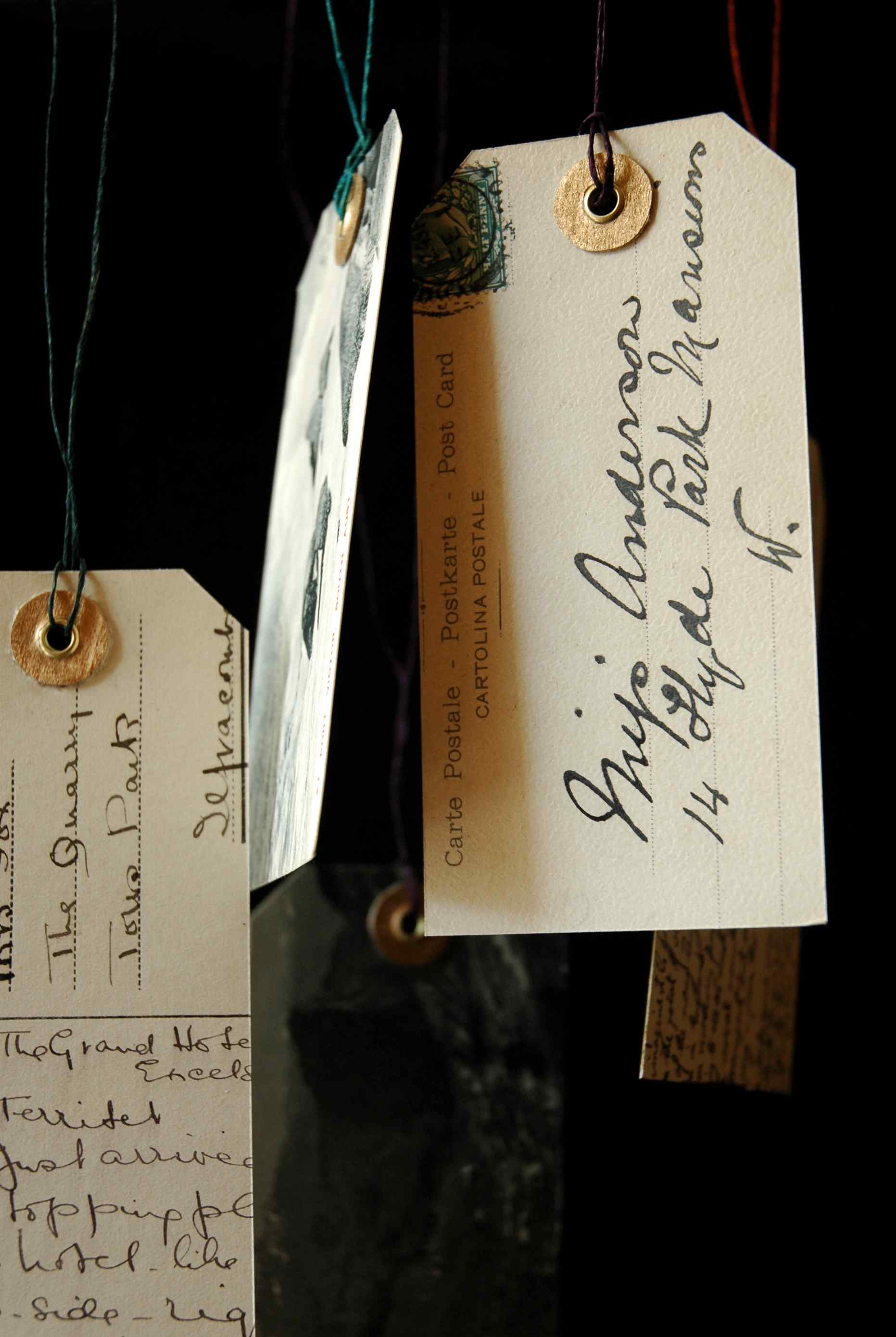I’m working with luggage labels at the moment. I have an old battered suitcase which must have travelled all over the place, each time with a different luggage label attached.