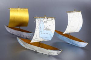 The paper art I’ll be showing this year includes my new Viking boats which are created using nautical charts and gold paper. I’ll also have Japanese anemones and collections of tiny envelopes.